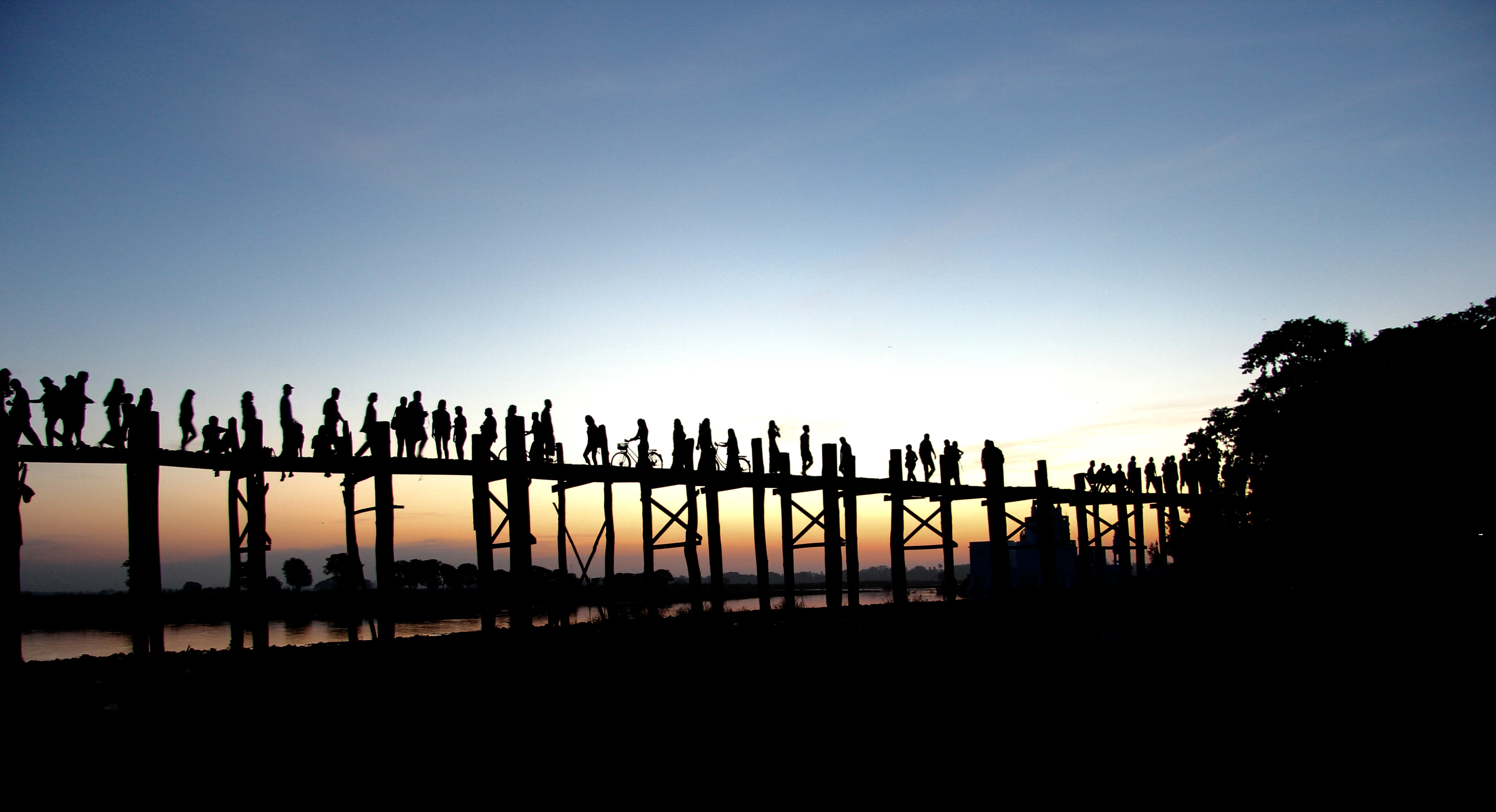 Des madriers sont jetés sur la berge vaseuse et on débarque ainsi entourés de jeunes birmans criant de joies à notre descente. C’est chaleureux et sincère. L’accueil birman aux sourire rouge, chemise ouverte,longwy et tongues.